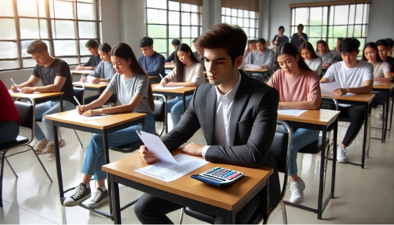 (模擬考試情境,學生們專心致志)
