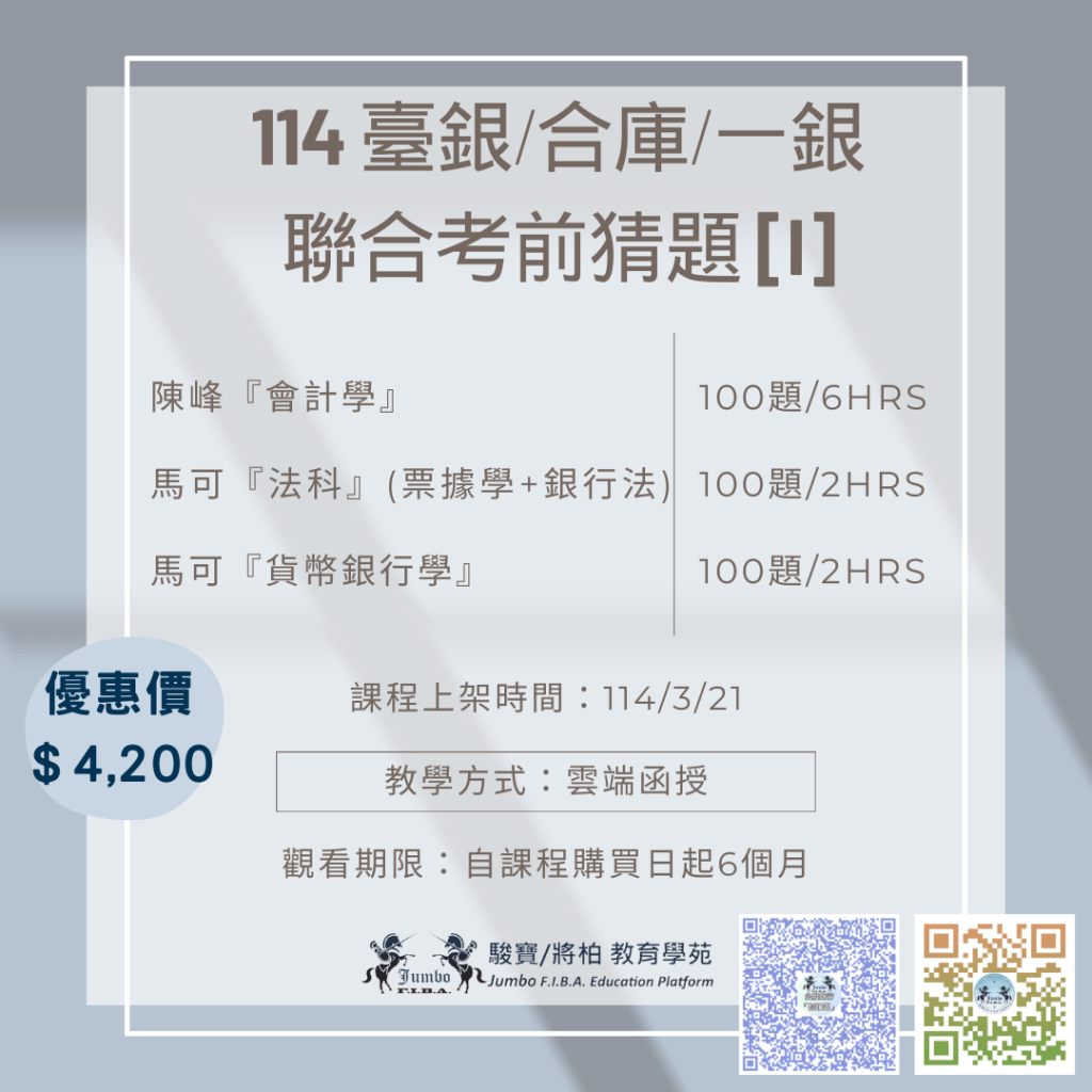 公股銀行/記帳士/證券分析師/國營事業/金融證照/FIT IV