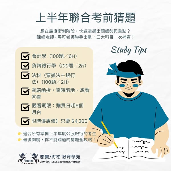 📚 考前重點突破! 我們邀請了資深講師陳峰與馬可老師,針對臺銀與合庫的聯合考試,進行專業的考前猜題與分析,讓你在考場上無往不利!💪
